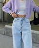 A purple pearl and a mint green pompom pendant. The spell is cast! You don't even need any other accessories, these earrings do it all!