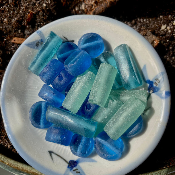 The recycled glass bead has been cut and polished to give it a pearl shape. The color, however, has not been changed. This is the original color (of the bottle, glass, window, etc.). IT IS NORMAL THAT IT HAS IMPERFECTIONS. That’s what makes it so charming!